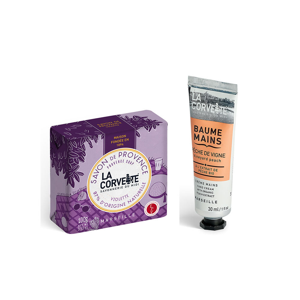 プロヴァンスのフレグランスソープ100gとハンドクリーム30mLのギフトセット。